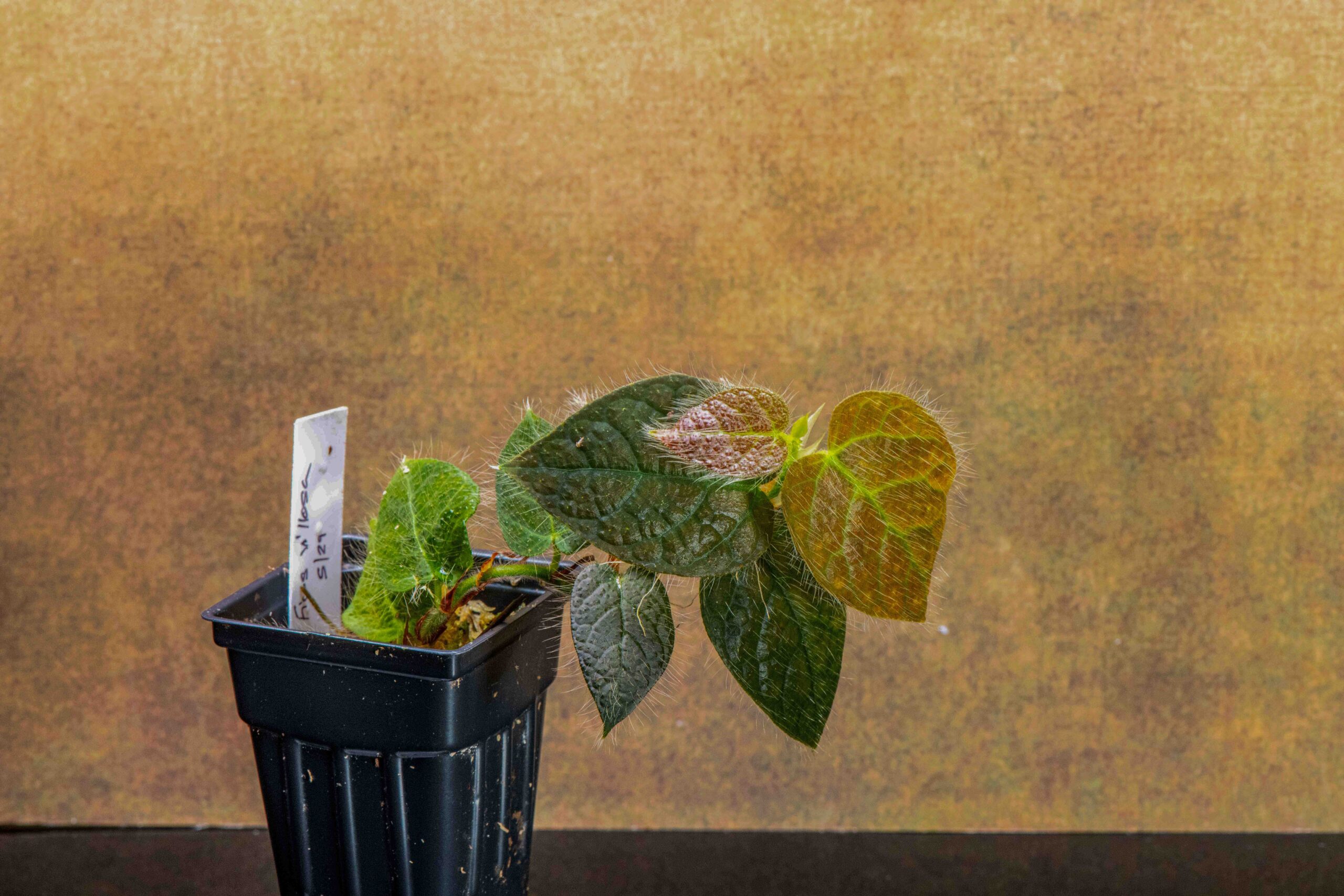 Growth is moderate overall. It can be somewhat slow to establish, but once settled in, Ficus villosa becomes a steady and reliable grower. New leaves emerge in striking shades of red, shifting through gold and yellow-green tones before maturing to a rich green, creating an appealing color progression in the terrarium.