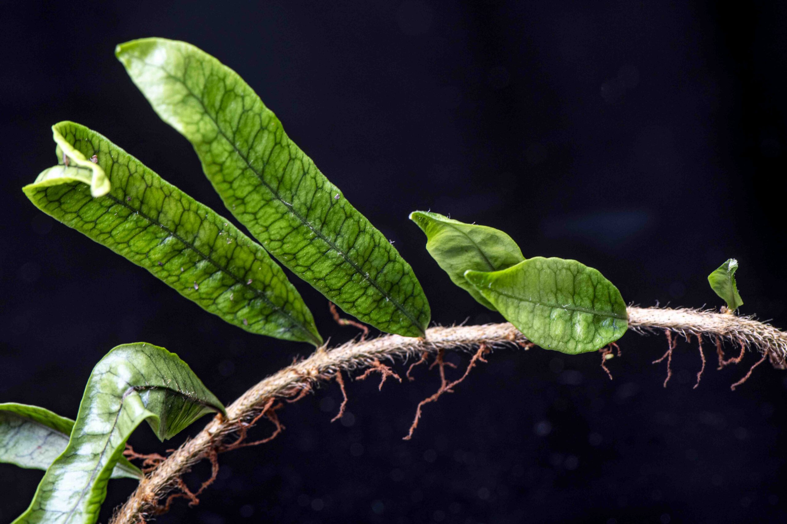 This beautiful creeeping fern is a great addition to the dart frog tank.  Lance shaped leaves typically run around 3 inches long, and are marked with deep green veins which really make the leaves beautiful…the contrast between the dark green veins and the somewhat lighter leaves is really striking.