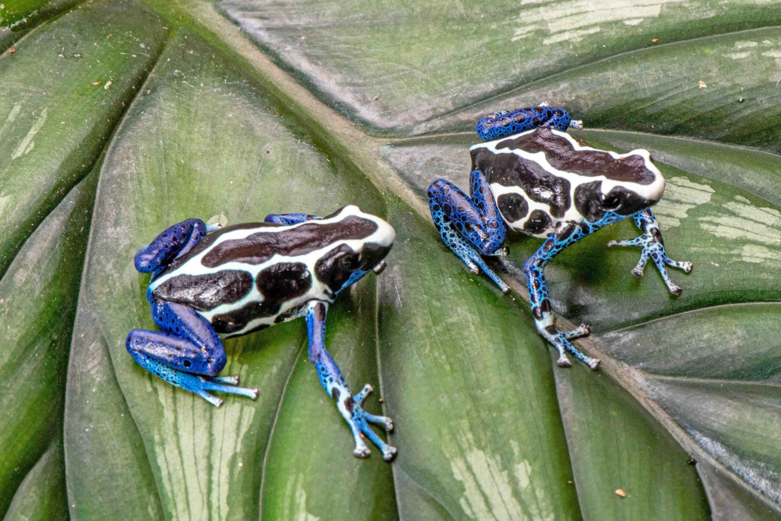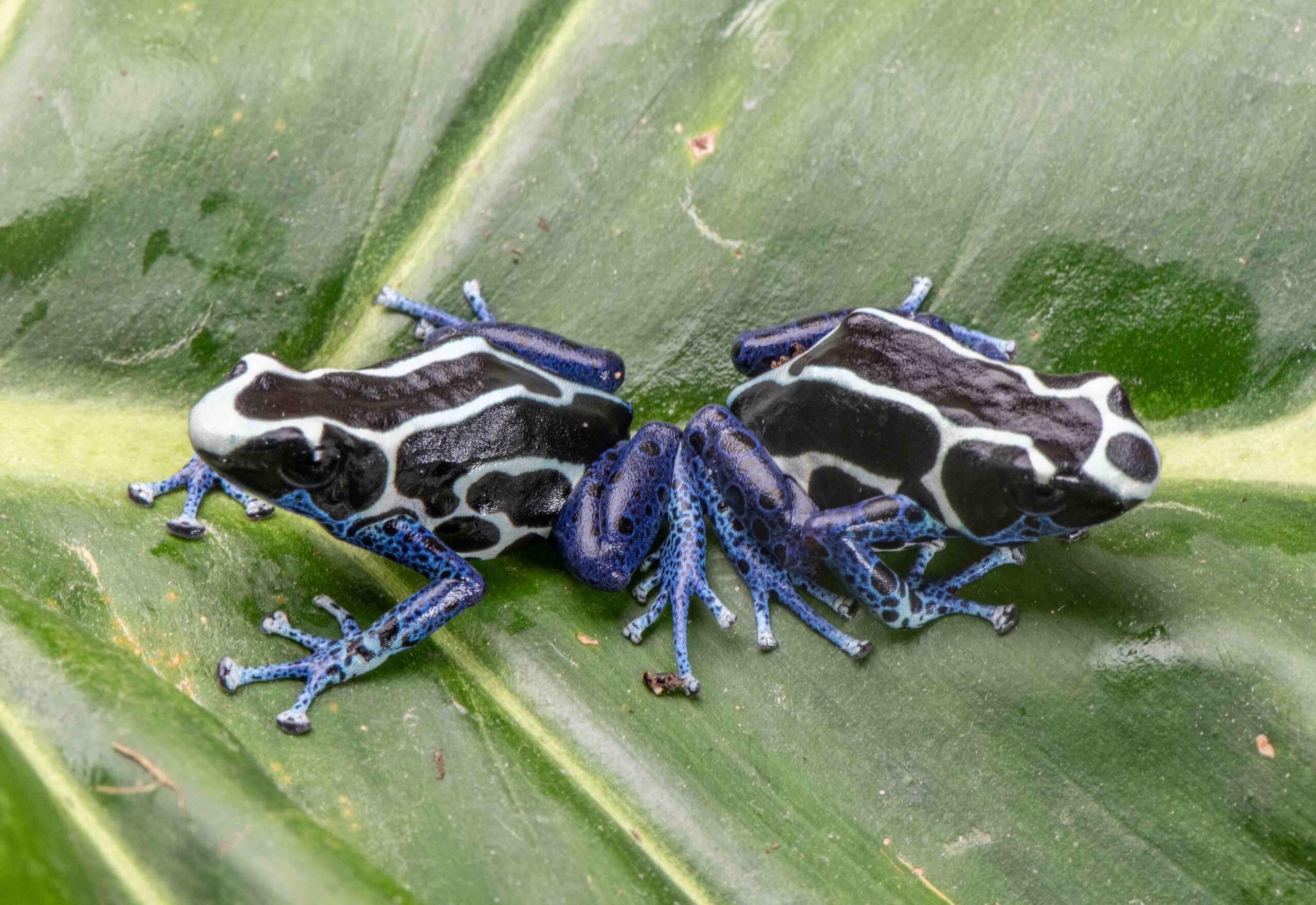 The Oyapok locale of Dendrobates tinctorius is one of the smallest forms of tinctorius, roughly the same size as the French Guiana Cobalts, (Kaw Mountain), and are sought after for their unique and striking coloration. Featuring bone-white patterns that are rare among dart frogs, complemented by “blue jeans” blue legs and light “bracelets” on their front ankles, this is a unique looking dart frog!