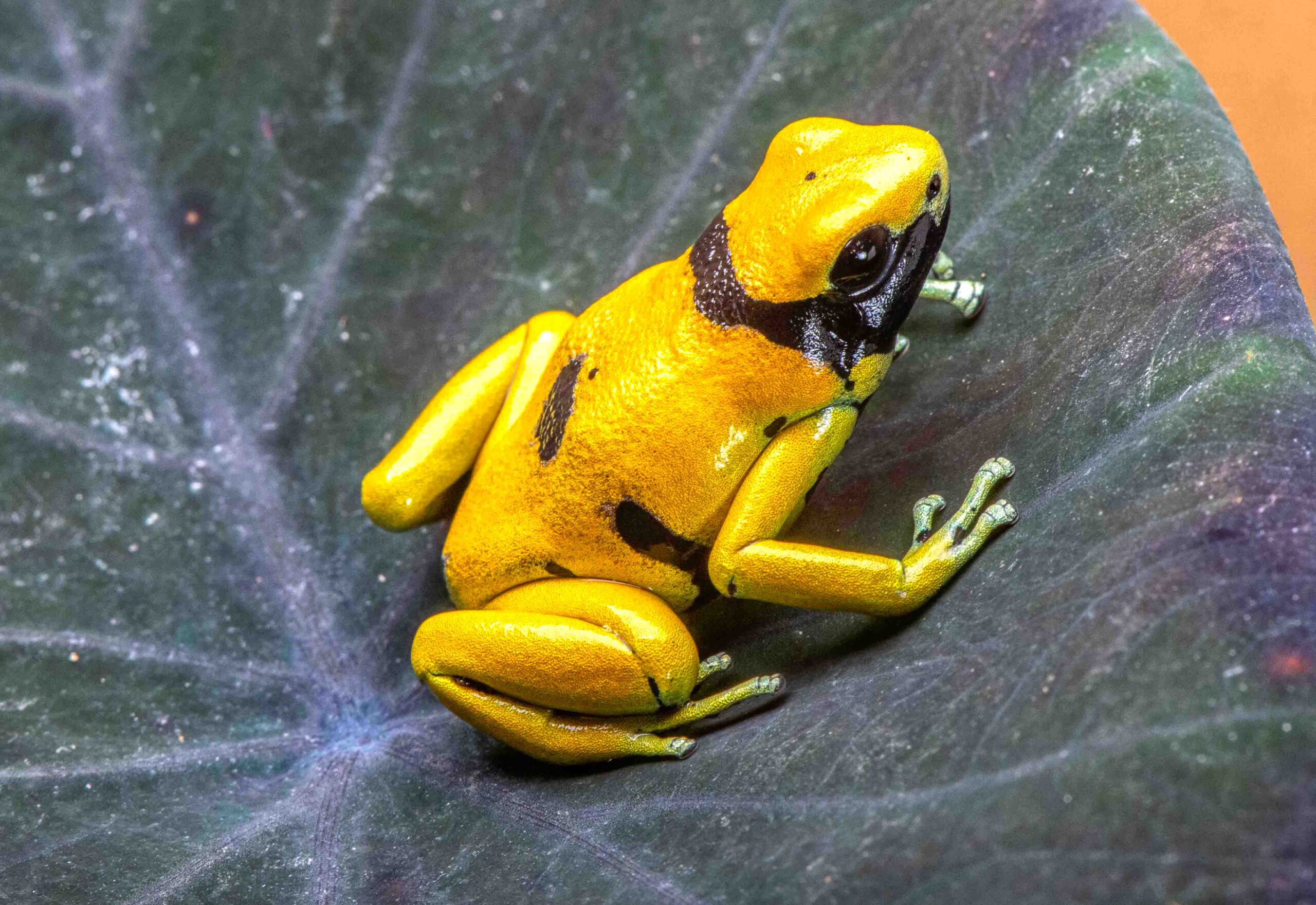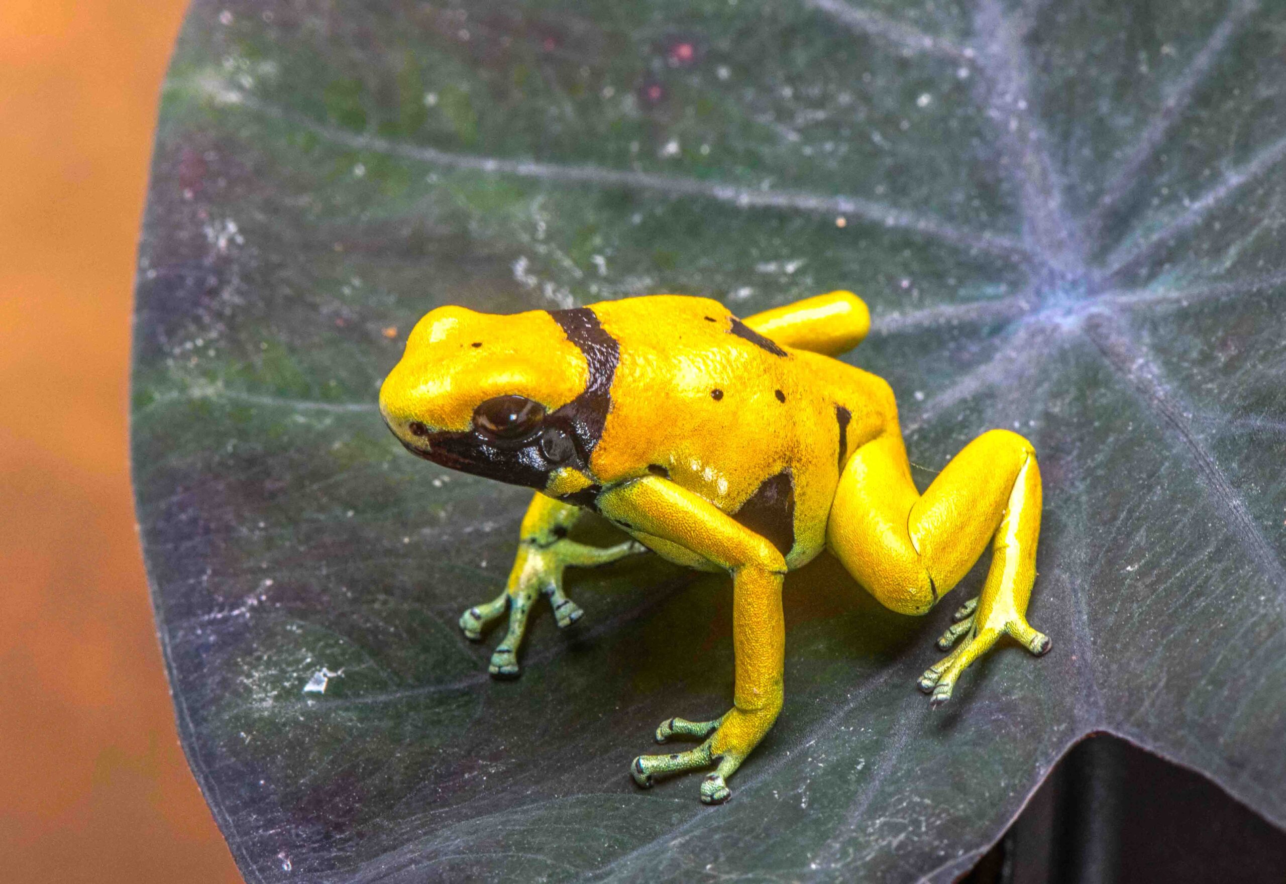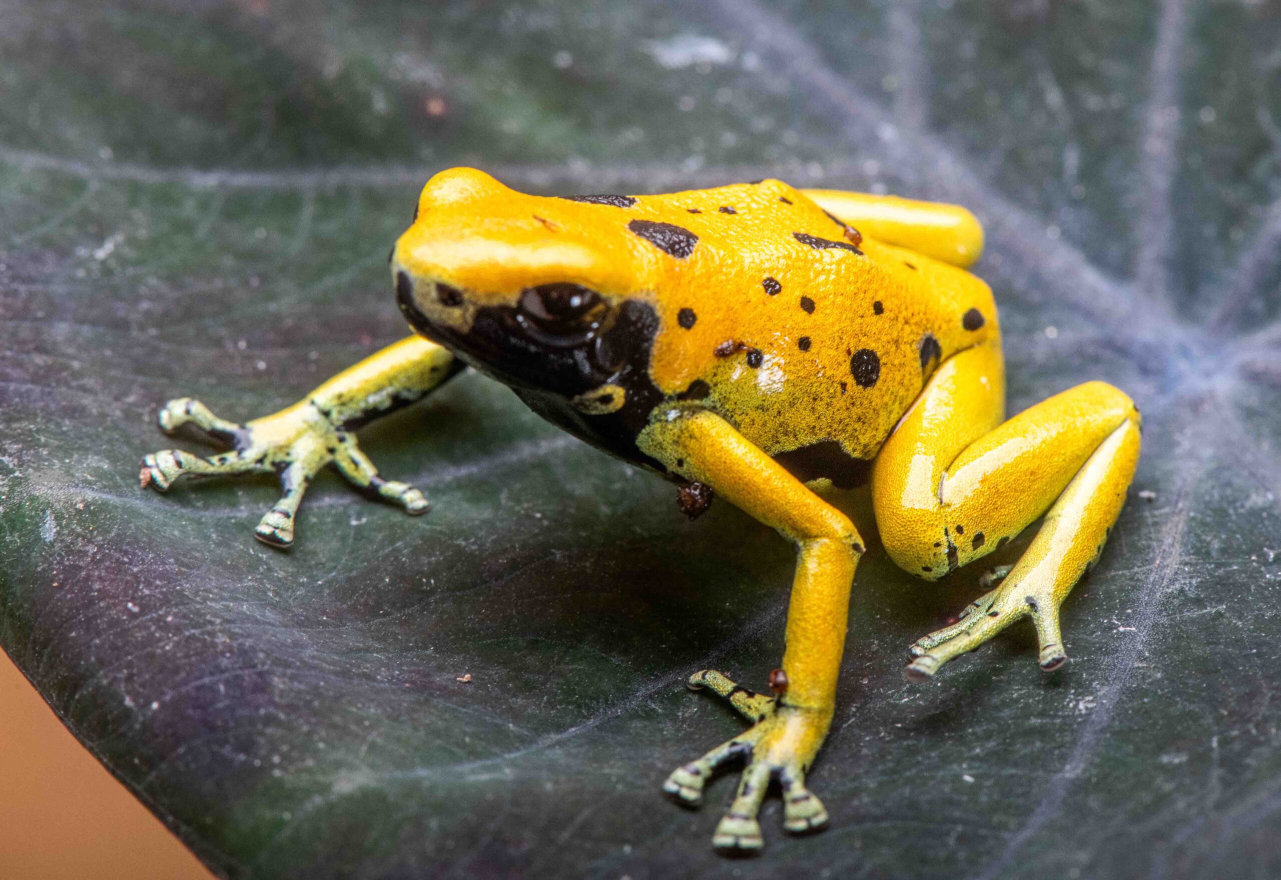 These Rio Negro locale leucomelas showed up in the US hobby a few years ago in very limited numbers. They are about 2/3rds the size of a standard leucomelas, and while the base color of bright yellow is the same as standard leucomelas, the bands have morphed into random abbreviated marking, with no two frogs the same.