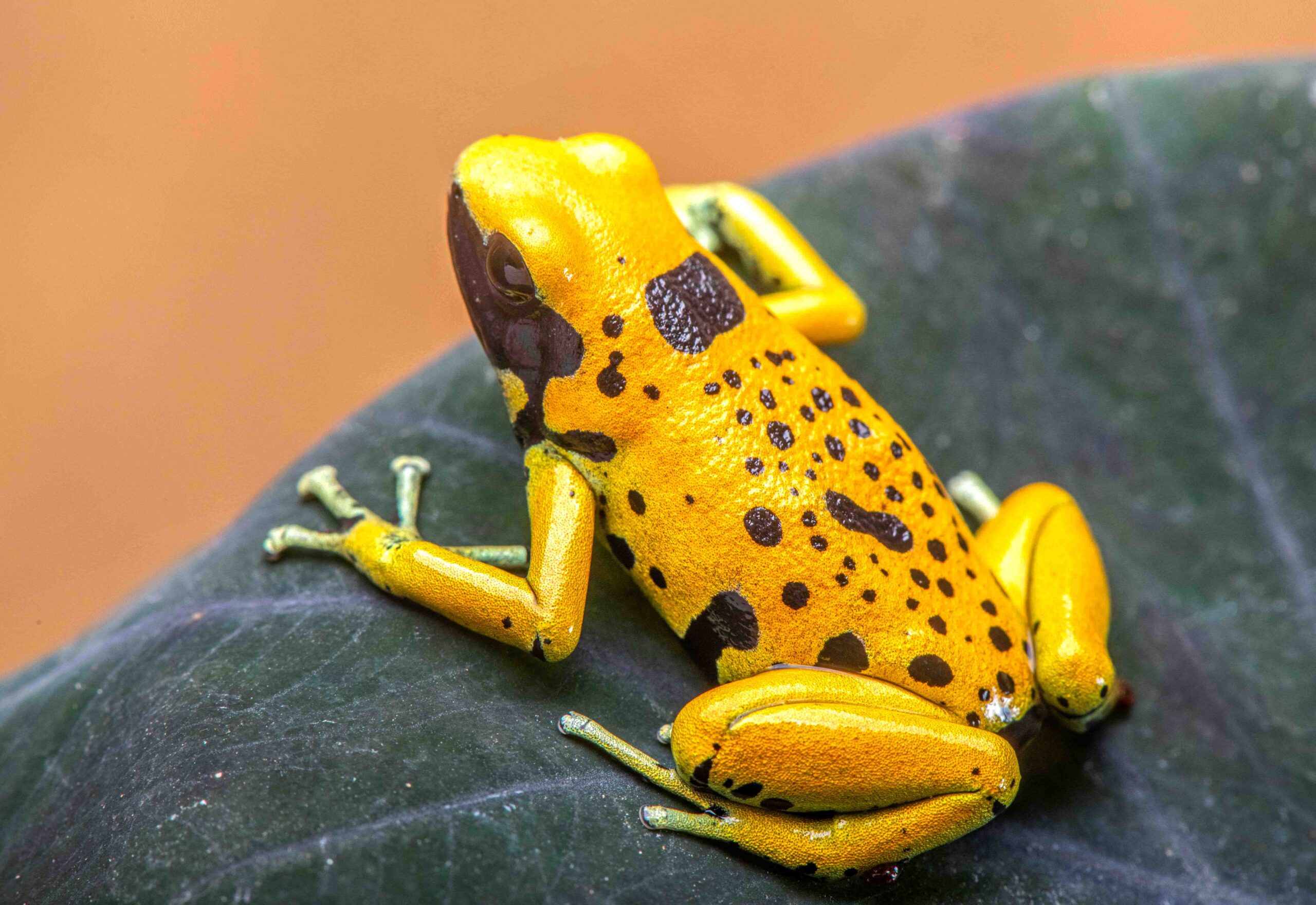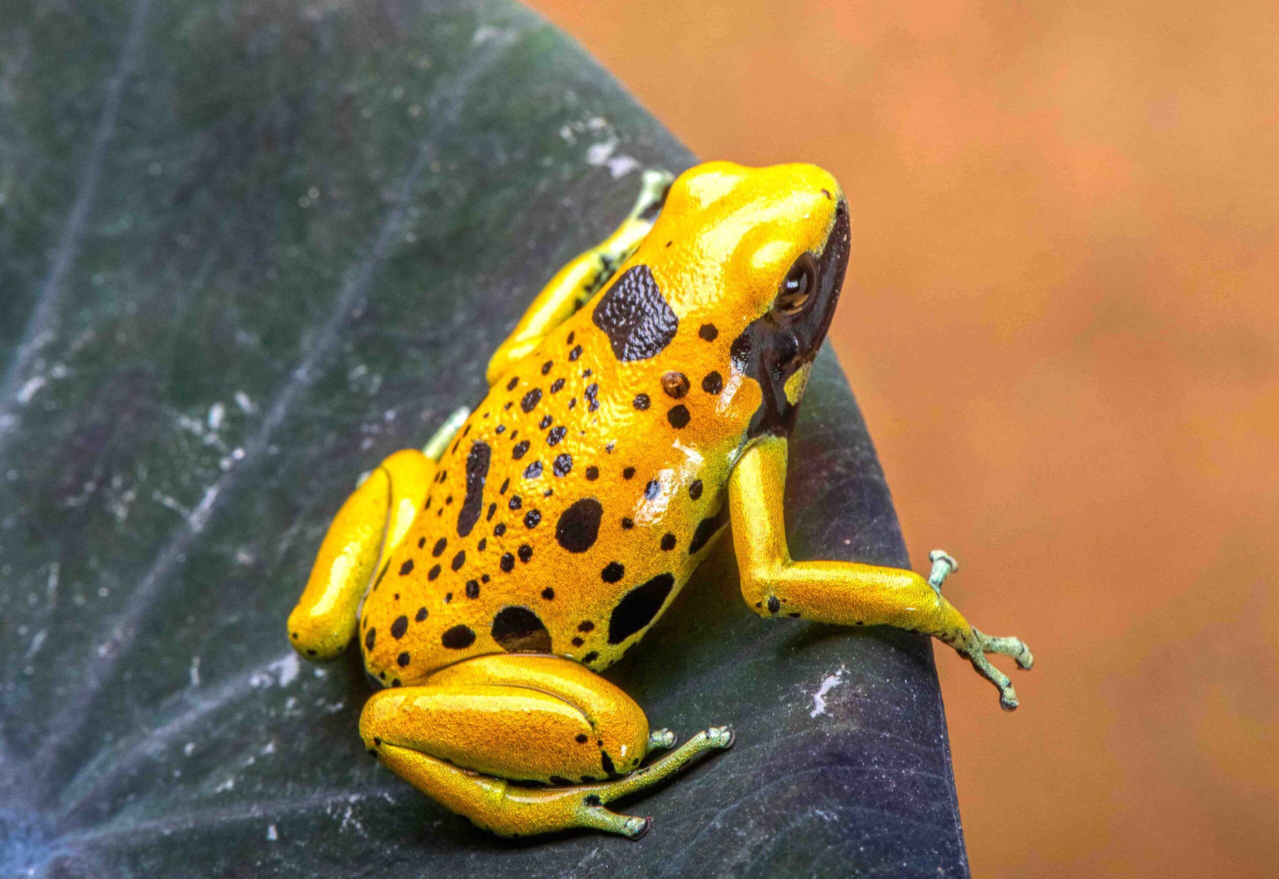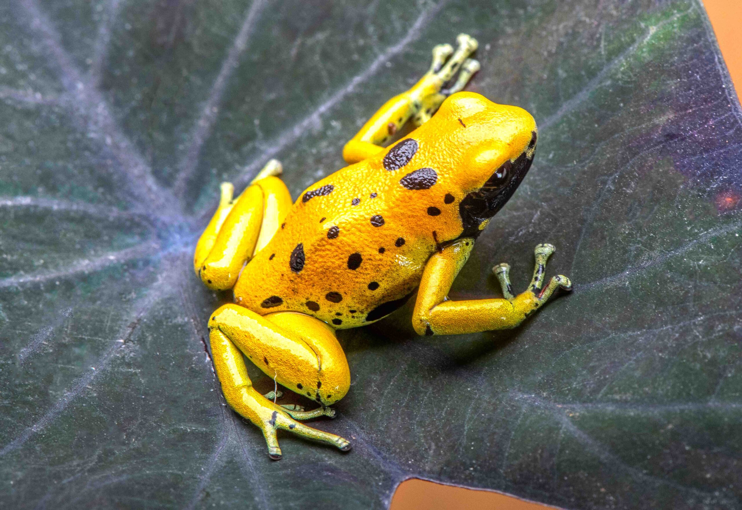 These Rio Negro locale leucomelas showed up in the US hobby a few years ago in very limited numbers. They are about 2/3rds the size of a standard leucomelas, and while the base color of bright yellow is the same as standard leucomelas, the bands have morphed into random abbreviated marking, with no two frogs the same.